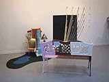 The media list of a single Jessica Stockholder installation reads more like a list of things that you might pack last when moving from one place to another: couch cushions, plastic container lids, acrylic and oil paint, shoelaces, hardware, chain, plastic scoop, and toilet plunger. Even though Stockholder is best known for her large-scale, site-specific installations that link colors, forms, lines, and spaces into always surprising relationships, she has managed thr... More >>